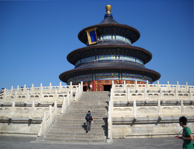 "หอเทียนถาน" หรือ "หอบวงสรวงสวรรค์" ที่ตั้งอยู่ทางตอนใต้ของกรุงปักกิ่งนั้น เริ่มสร้างเมื่อปีค.ศ.1420เป็นสถานที่ประกอบพิธีสักการบูชาฟ้าและดินของ กษัตริย์แห่งราชวงศ์หมิง (ค.ศ.1368-1644) และชิง (ค.ศ.1644-1911) ของจีนซึ่งเป็นพระราชพิธีที่กระทำขึ้นเพื่อบวงสรวงฟ้าขอฝนให้พืชผลใน ไร่นาอุดมสมบูรณ์และ พสกนิกรอยู่ร่มเย็นเป็นสุขนั่นเอง บนพื้นที่กว่า 2.7 ล้านตารางเมตรของเทียนถาน ซึ่งมีขนาดใหญ่กว่า "กู้กง" หรือ "พระราชวังโบราณ" ถึง 4 เท่านั้น ประกอบด้วยกำแพงโอบล้อม 2 ชั้น ซึ่งแบ่งเรียกเป็น "เขตชั้นนอก" คือ พื้นที่ในส่วนระหว่างกำแพงชั้นในกับชั้นนอก และ "เขตชั้นใน" คือ พื้นที่ใจกลางที่ล้อมรอบอยู่ด้านในของกำแพงชั้นในและจากความเข้าใจลึกซึ้งในเรื่องของฟ้าและดินของชาวจีนในสมัยโบราณที่ว่า แผ่นฟ้าโค้ง ผืนดินเหลี่ยม และ ฟ้าสูง แผ่นดินต่ำ จึงได้มีการออกแบบก่อสร้าง "เทียนถาน" ด้วยรูปแบบสถาปัตยกรรมพิเศษที่ เน้นความเชื่อดังกล่าว คือ ให้กำแพงด้านทิศเหนือสูงกว่าด้านใต้และมีลักษณะเป็นรูปครึ่งวงกลมส่วนด้านใต้จะต่ำกว่าและเป็นรูปเหลี่ยมมุมฉาก ซึ่งถูกเรียกว่า "กำแพงฟ้าดิน" สำหรับสิ่งปลูกสร้างสำคัญต่าง ๆ ในเทียนถาน เช่น "หยวนชิว" หรือ "แท่นบวงสรวงฟ้า" "ฉี่เหนียนเตี้ยน" หรือ "ตำหนักสักการะ" และ "ตำหนักหวงฉุงยูว์" หรือ "หอเทพสถิต" เป็นต้น ต่างก็เป็นทรงกลมเป็นสัญลักษณ์ที่แสดงให้เห็นปรากฏการณ์แห่งดวงดาว "ฉีเหนียนเตี้ยน" หรือ "ตำหนักสักการะ" เป็นสิ่งปลูกสร้างที่มีเอกลักษณ์ของจีนและก็เป็นสิ่ง ปลูกสร้างที่ยิ่งใหญ่สวยงามและโดดเด่นที่สุดในเทียนถาน เป็นสถานที่สำหรับบวงสรวงฟ้า เพื่อขอให้พืชพันธ์ธัญญาหารอุดมสมบูรณ์ เมื่อเข้าสู่ฤดูใบไม้ผลิ ตำหนักนี้มีเส้นผ่าศูนย์กลาง32เมตรและมีความสูงราว 40 เมตร