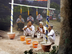 คนแก่คนเฒ่าเตรียมเทียนขี้ผึ้ง ลูกหลานเตรียมเครื่องบูชา ได้แก่ ข้าวเม่า ข้าวหลาม